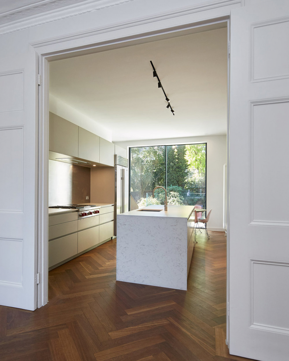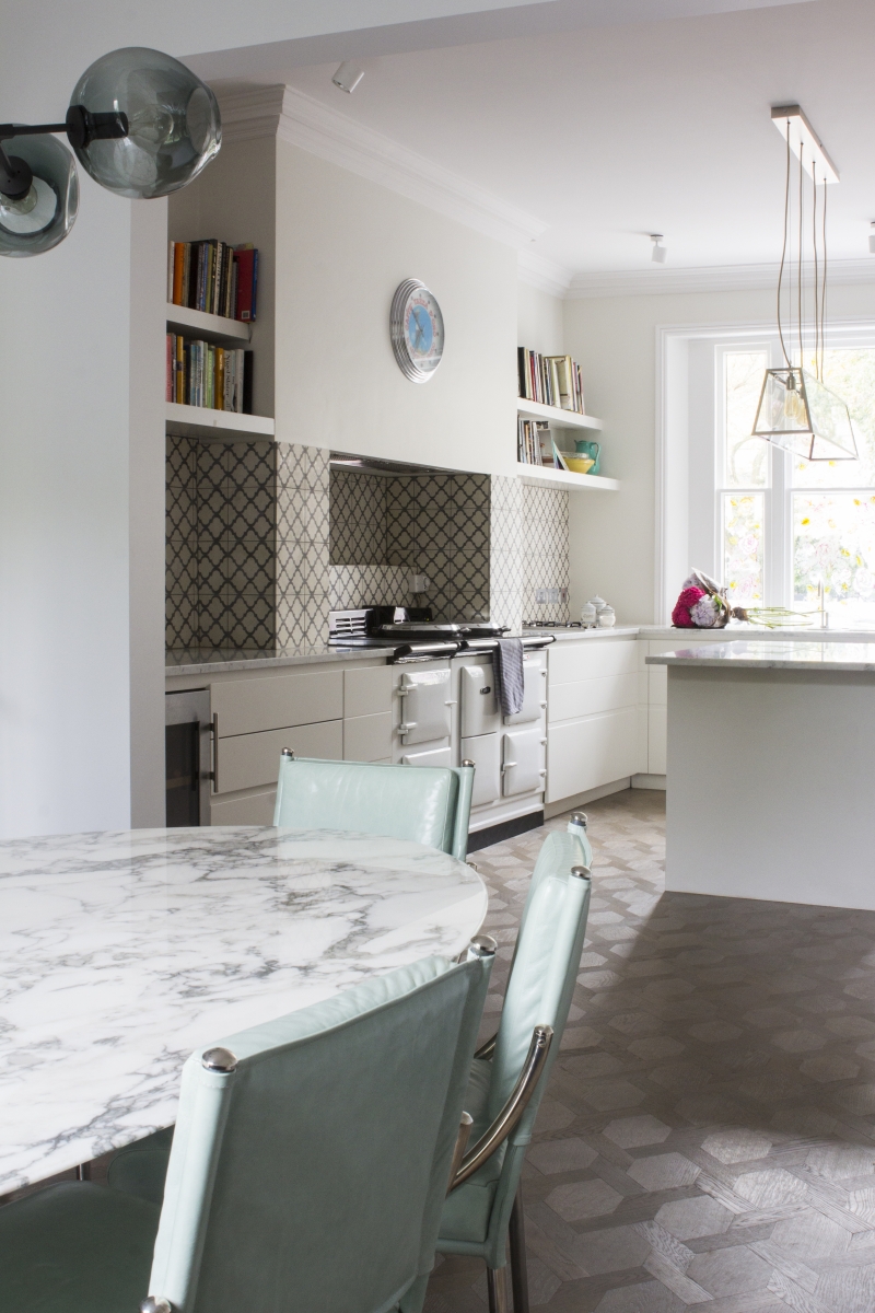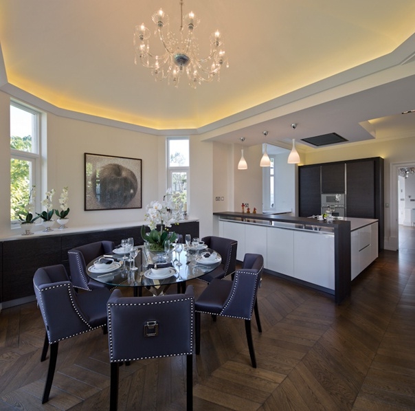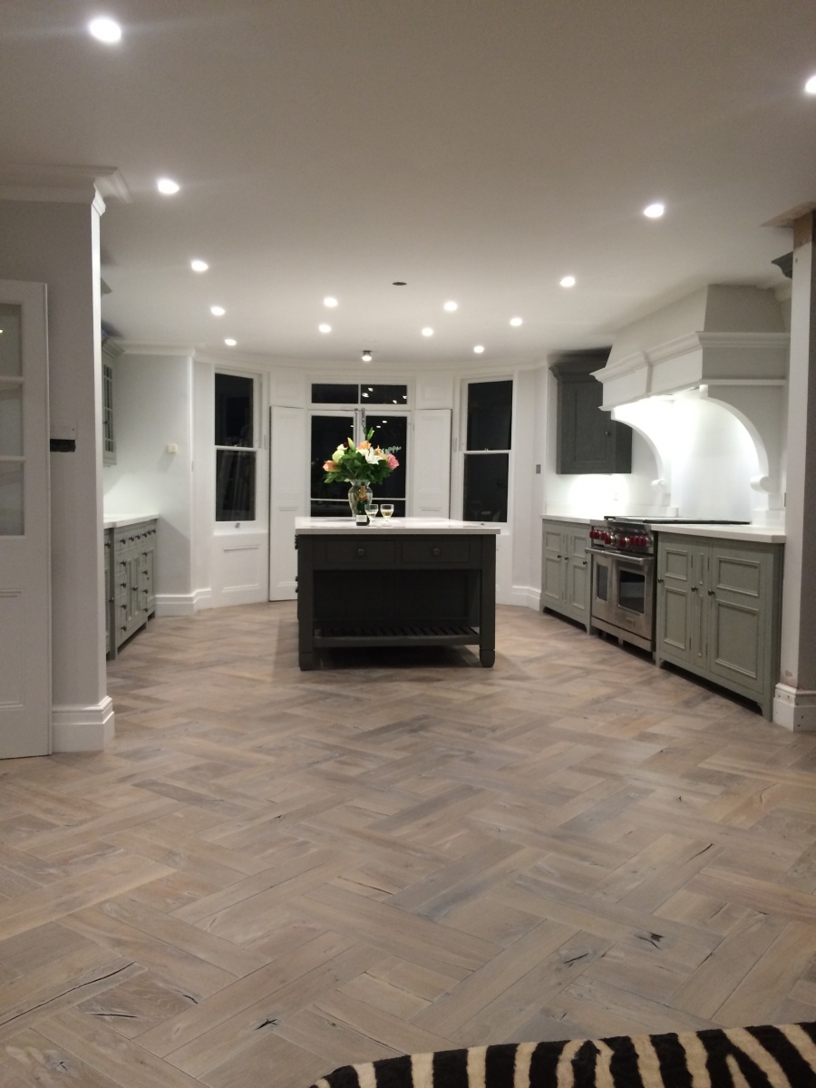 Oak Multilayer Herringbone Grey Reaction Stain White Lacquer