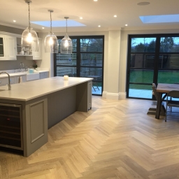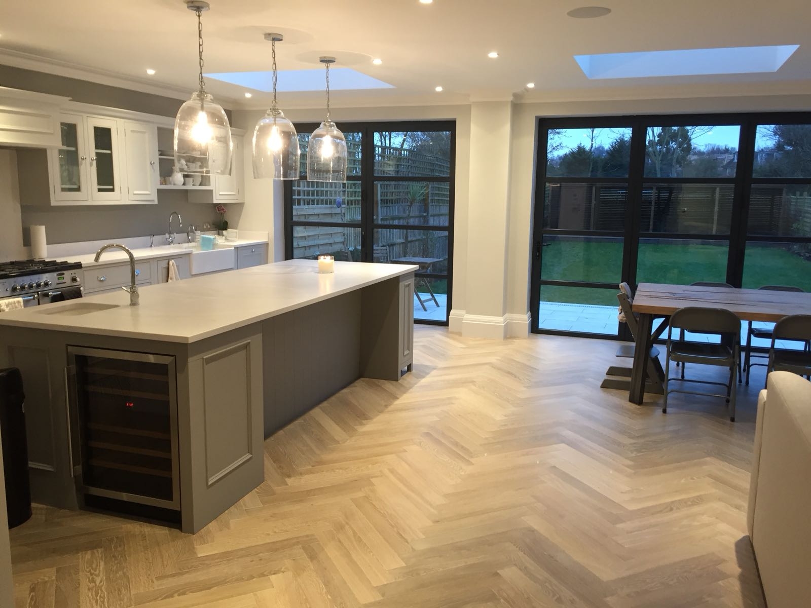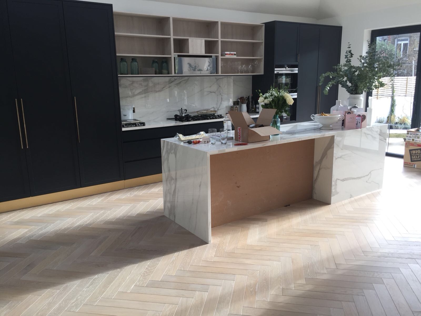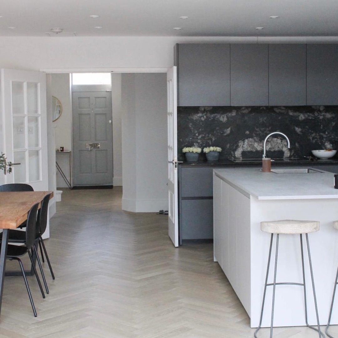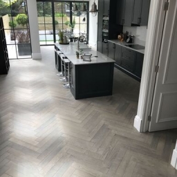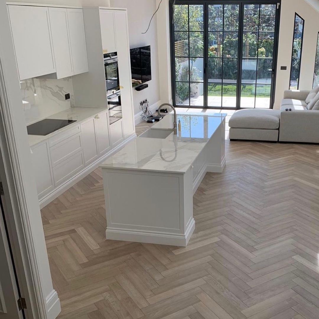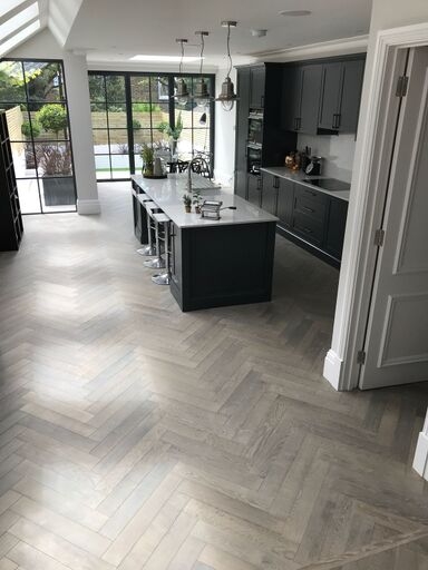 Oak Multilayer Herringbone Grey Reaction Stain with Extra White Stain Matt Lacquer