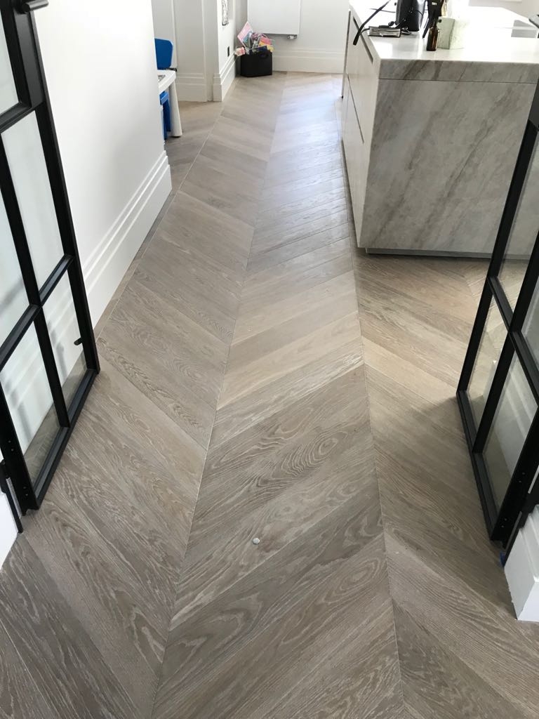Oak Multilayer Chevron Smoke Stain and White Oil