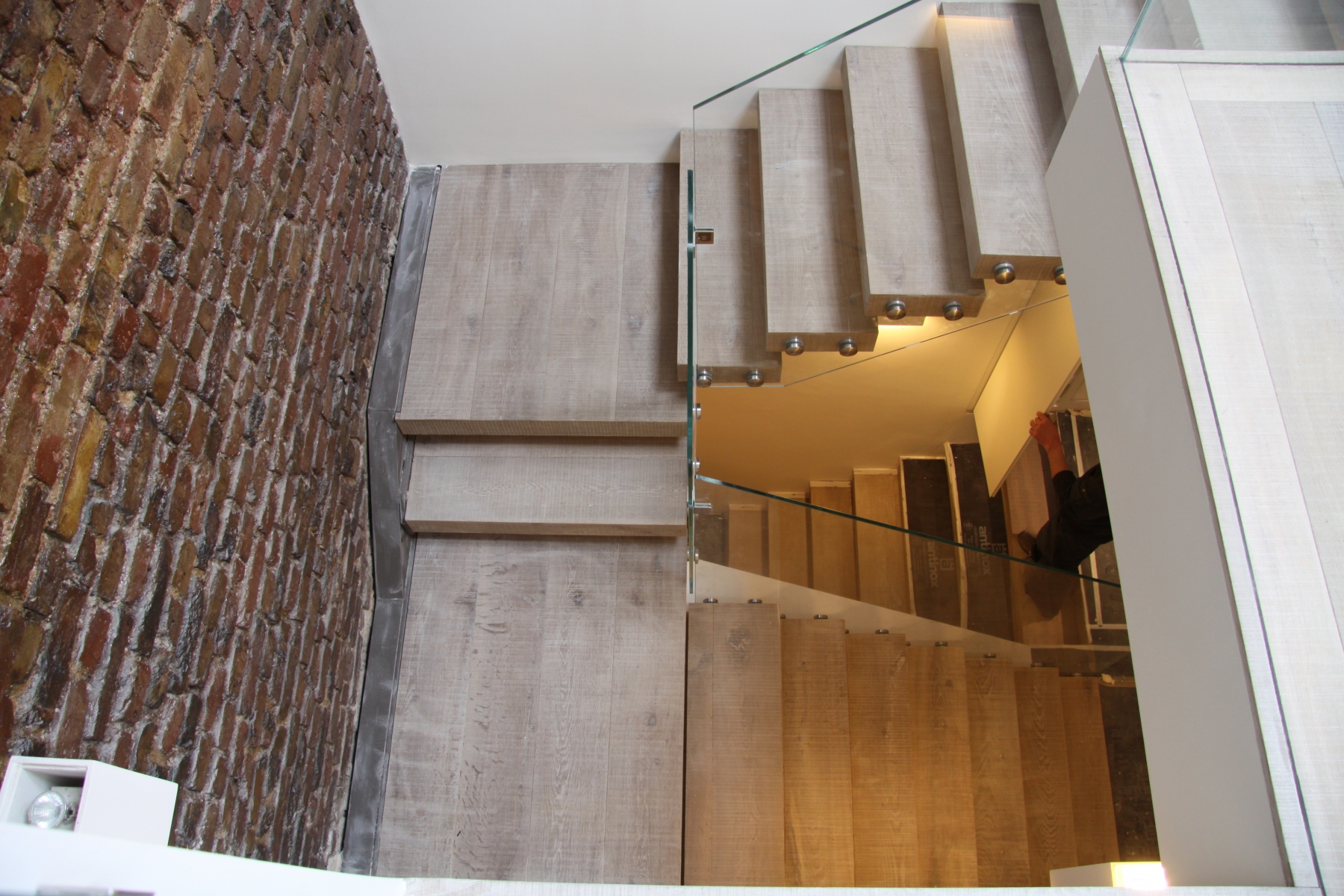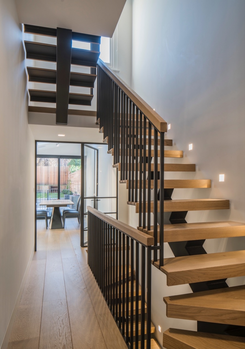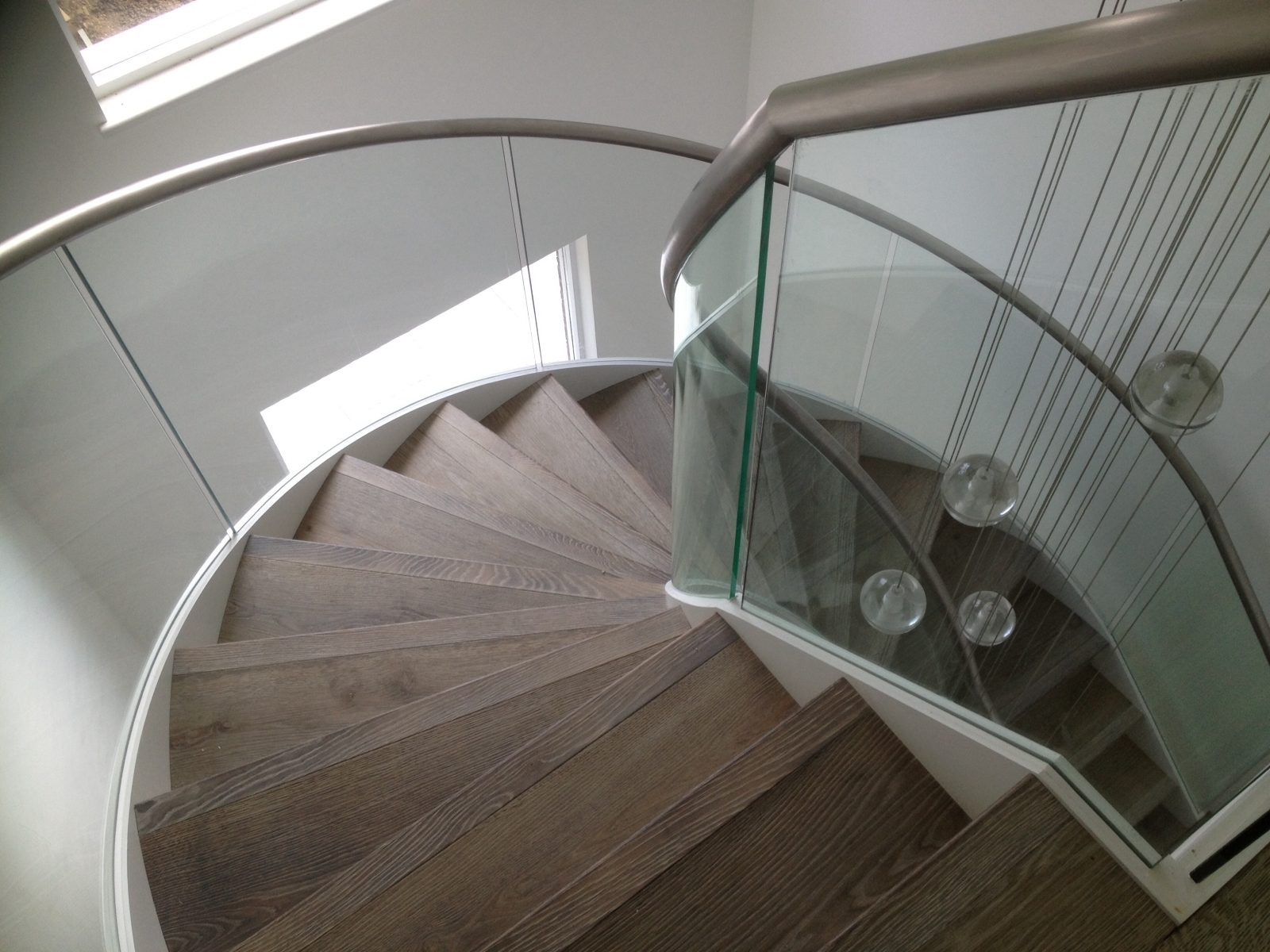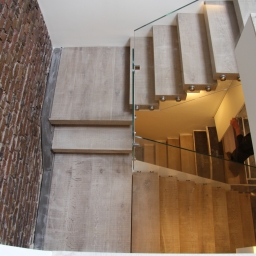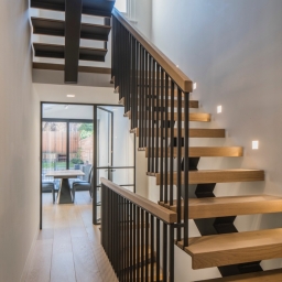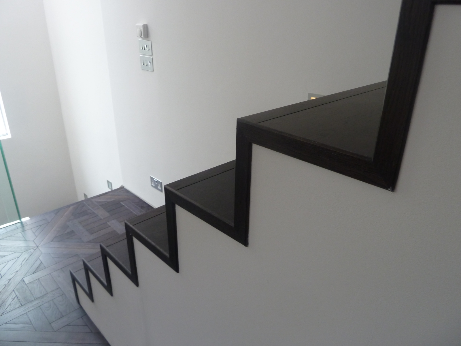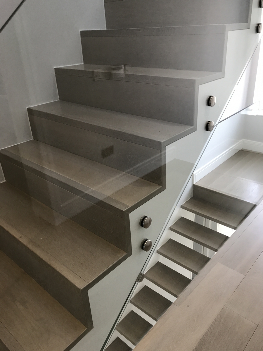 Bespoke Stair Case Floating Sawn Smoked White Lacquer